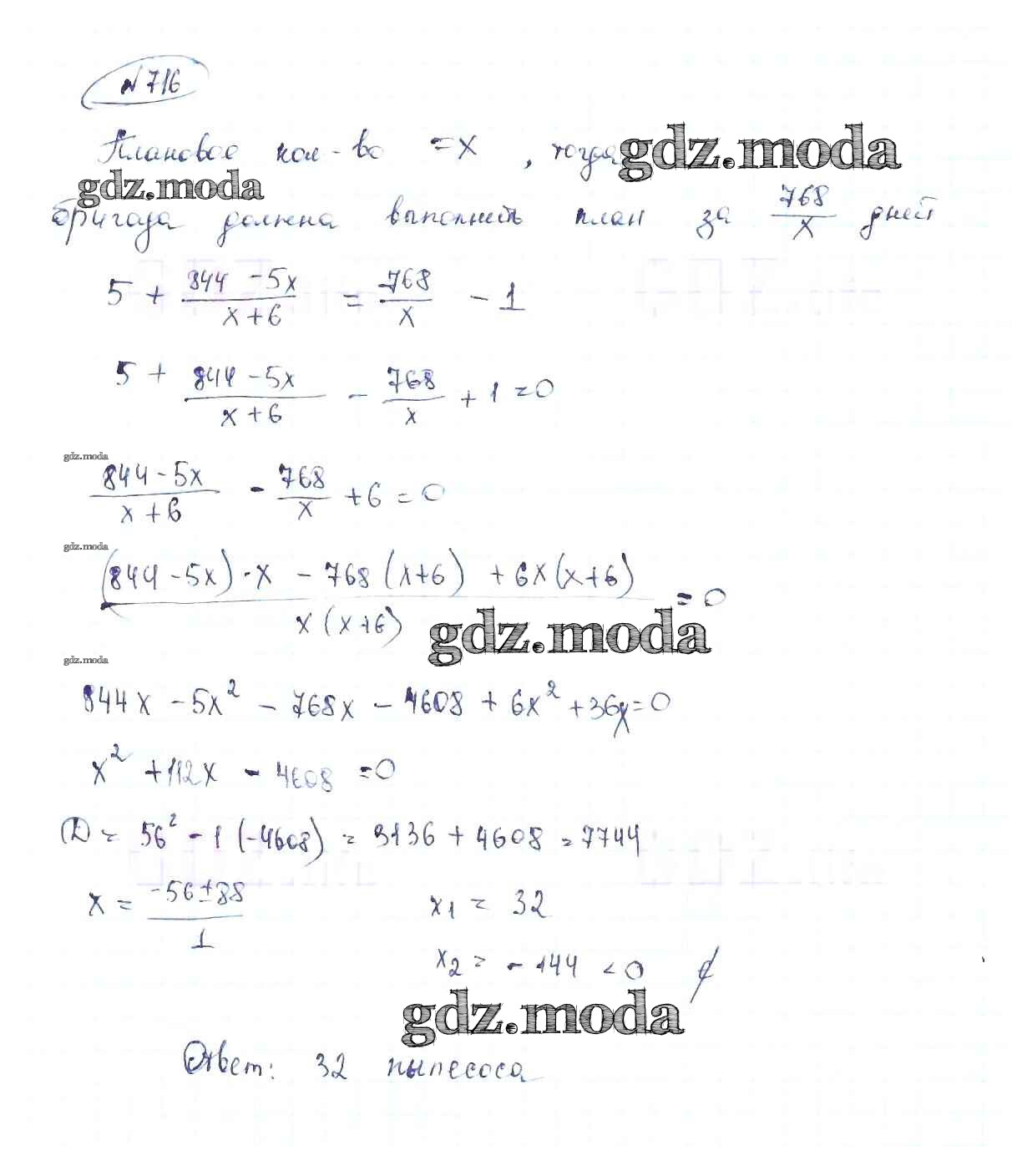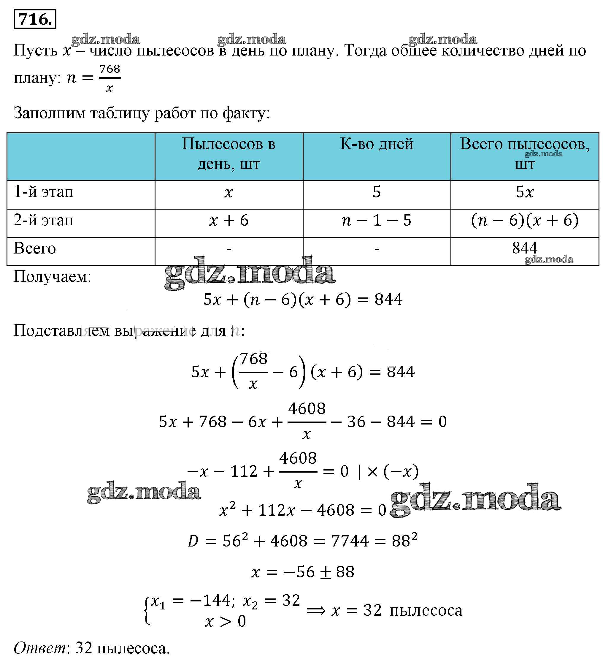 ОТВЕТ на задание № 716 Учебник по Алгебре 8 класс Макарычев