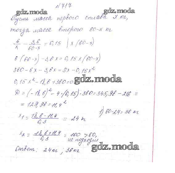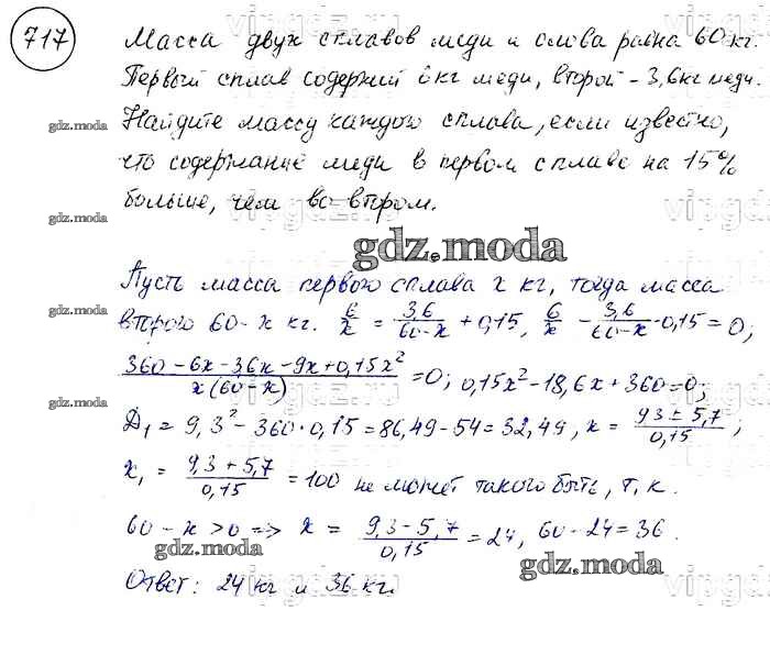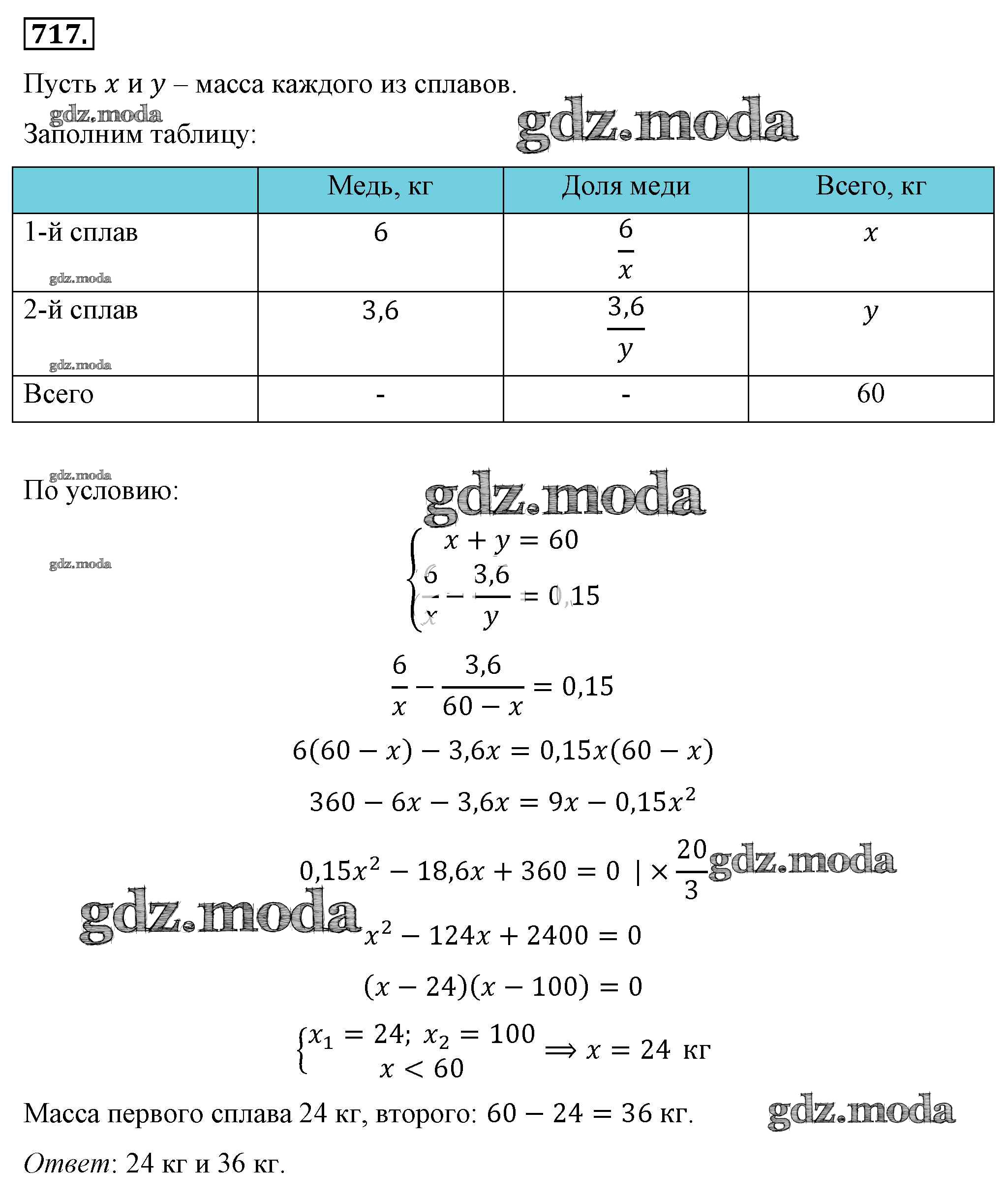 ОТВЕТ на задание № 717 Учебник по Алгебре 8 класс Макарычев