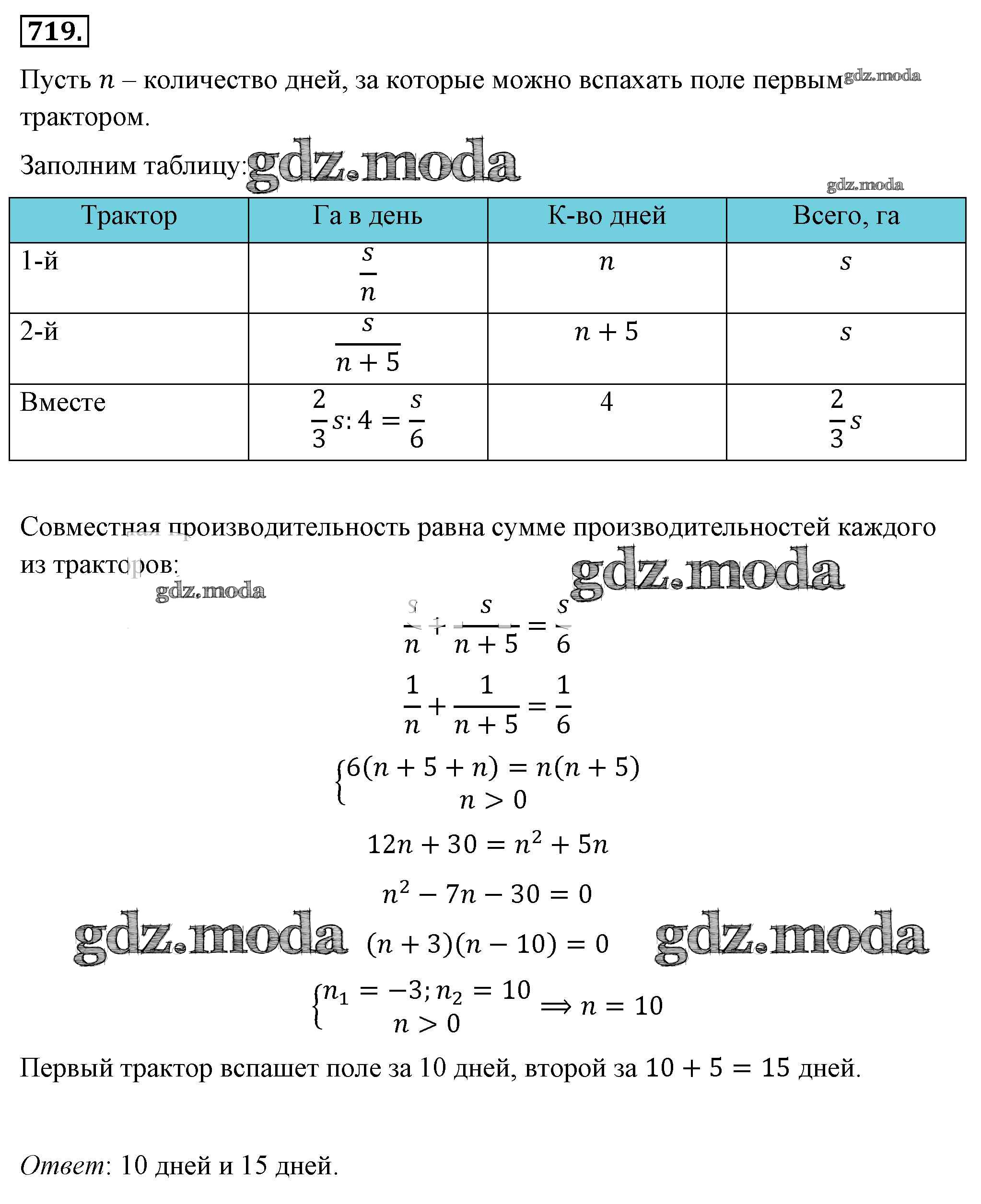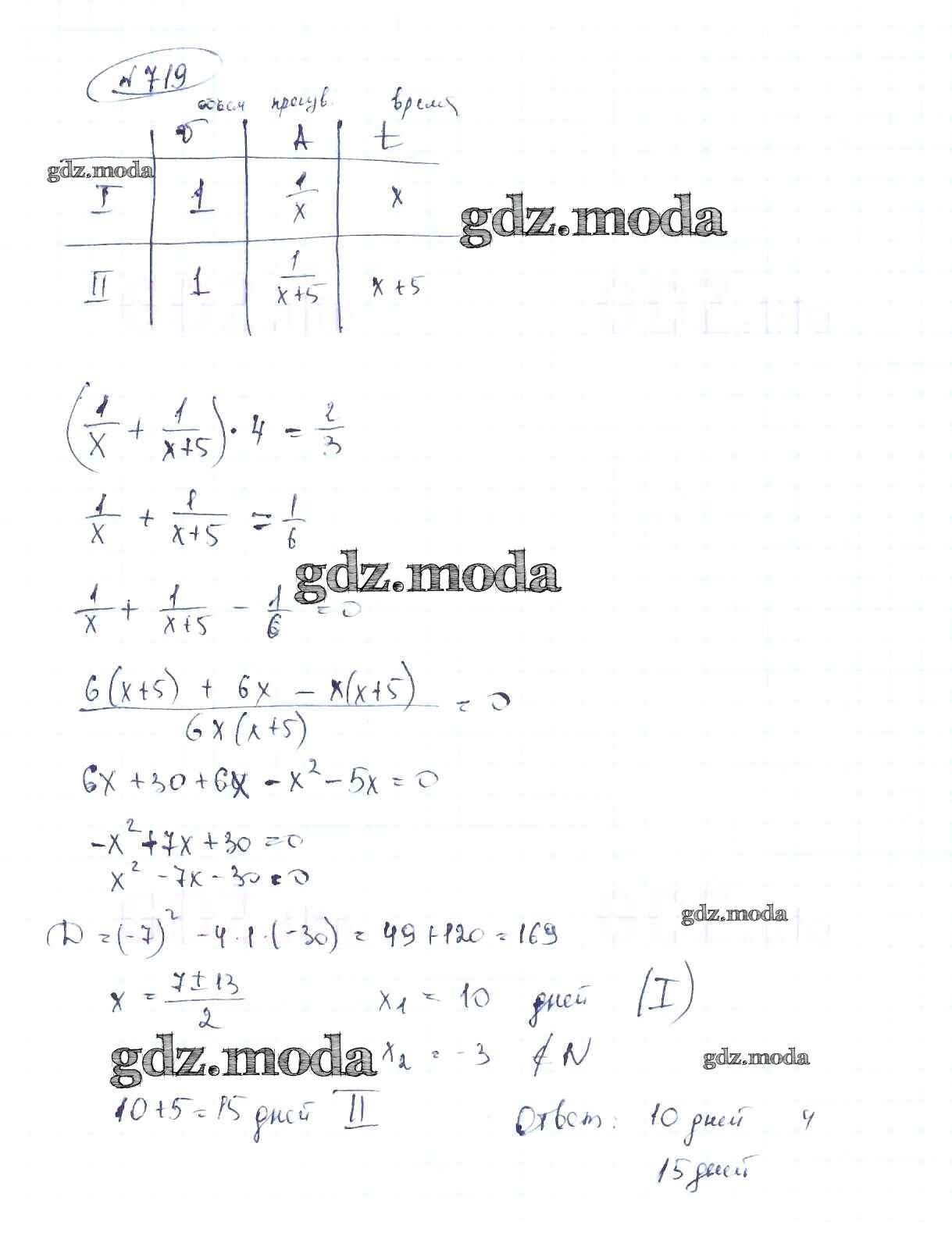 ОТВЕТ на задание № 719 Учебник по Алгебре 8 класс Макарычев