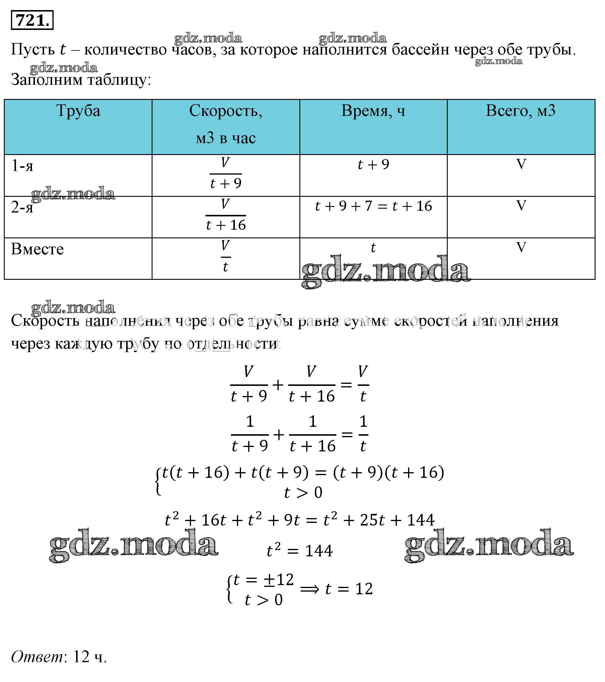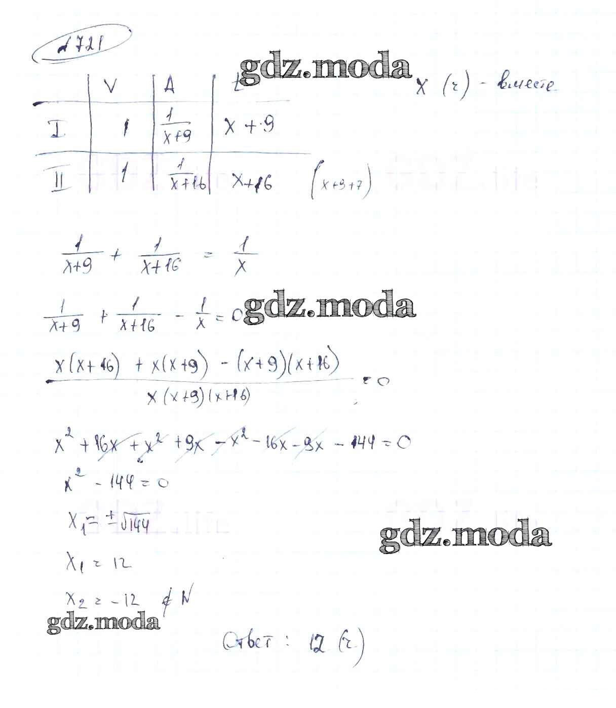 ОТВЕТ на задание № 721 Учебник по Алгебре 8 класс Макарычев