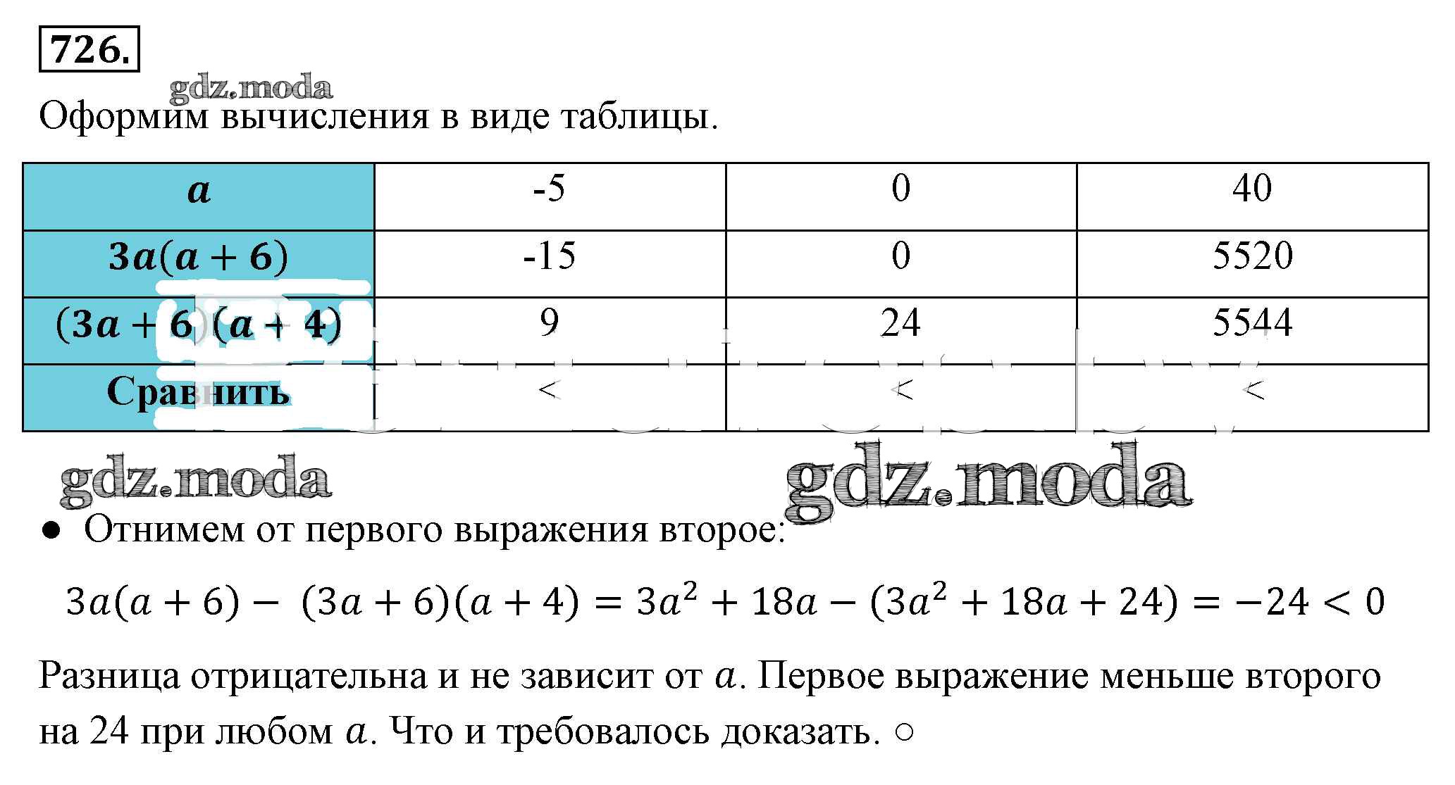 ОТВЕТ на задание № 726 Учебник по Алгебре 8 класс Макарычев