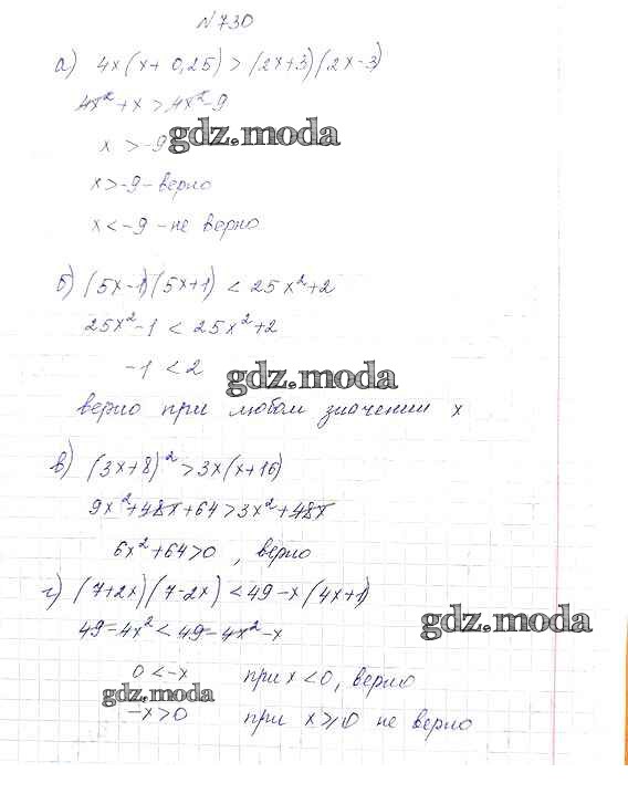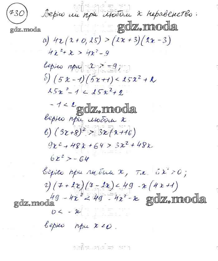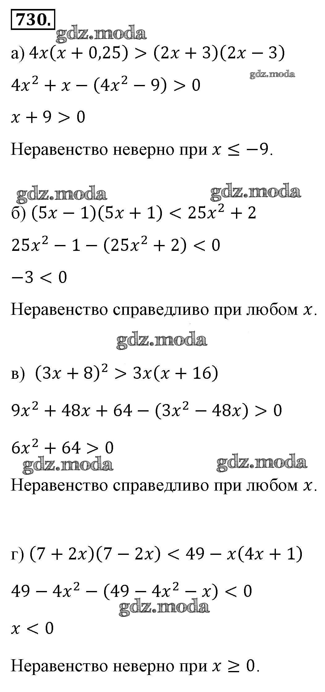 ОТВЕТ на задание № 730 Учебник по Алгебре 8 класс Макарычев