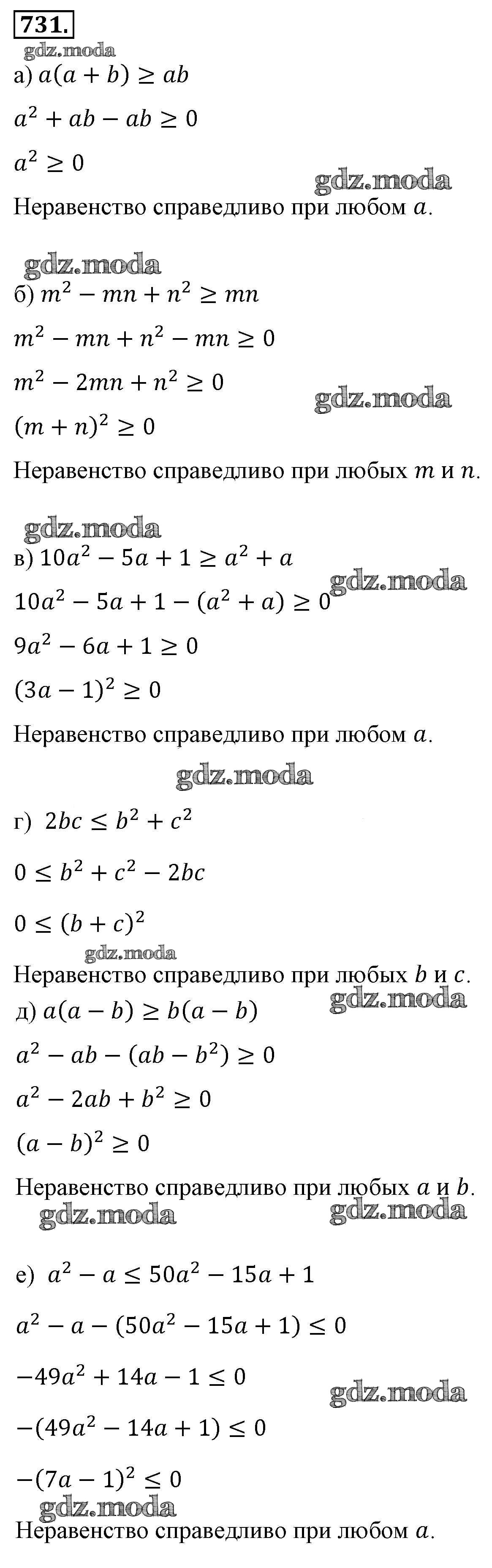 ОТВЕТ на задание № 731 Учебник по Алгебре 8 класс Макарычев