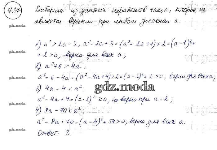 ОТВЕТ на задание № 737 Учебник по Алгебре 8 класс Макарычев