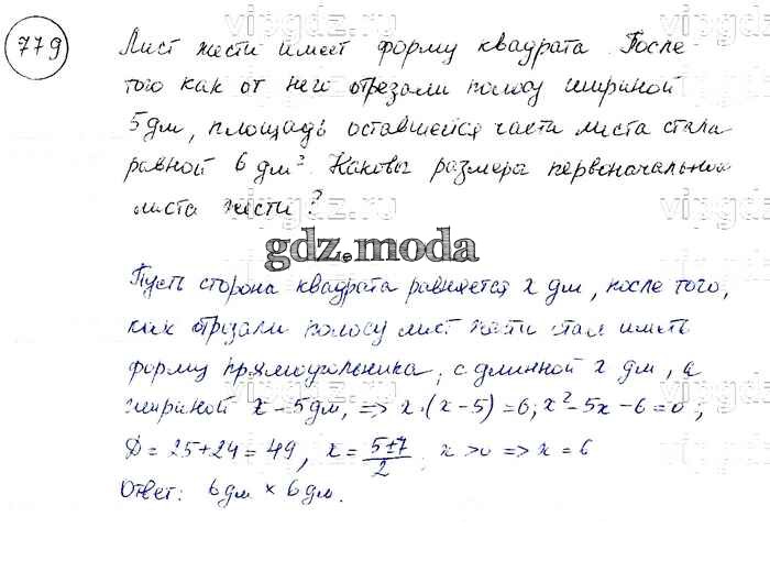 ОТВЕТ на задание № 779 Учебник по Алгебре 8 класс Макарычев