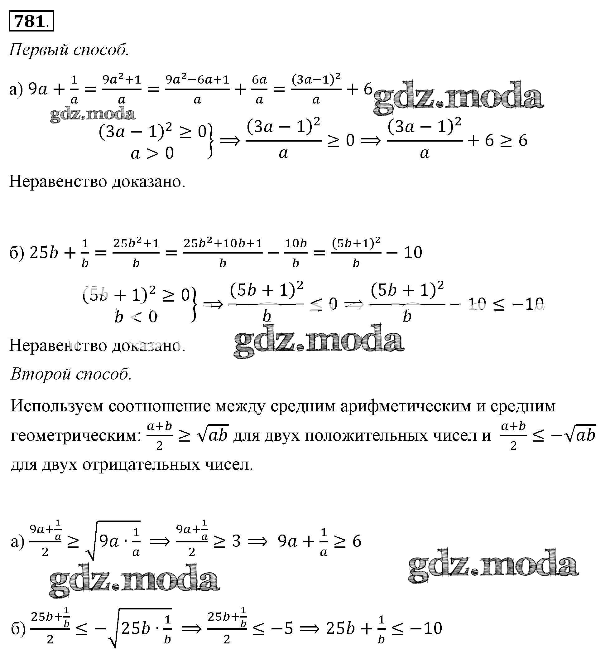 ОТВЕТ на задание № 781 Учебник по Алгебре 8 класс Макарычев