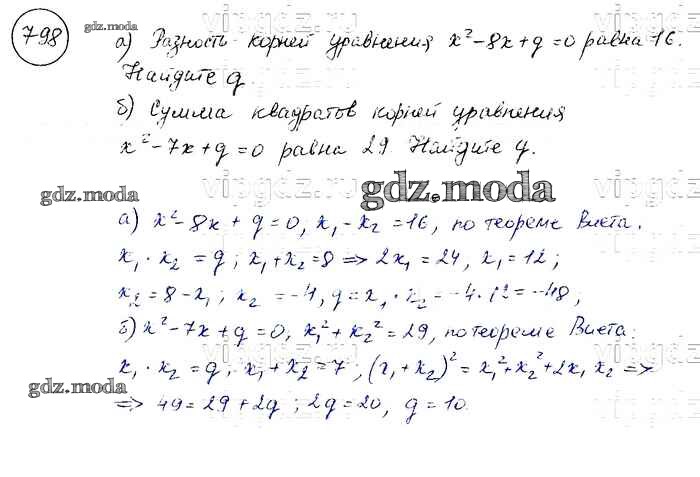 ОТВЕТ на задание № 798 Учебник по Алгебре 8 класс Макарычев