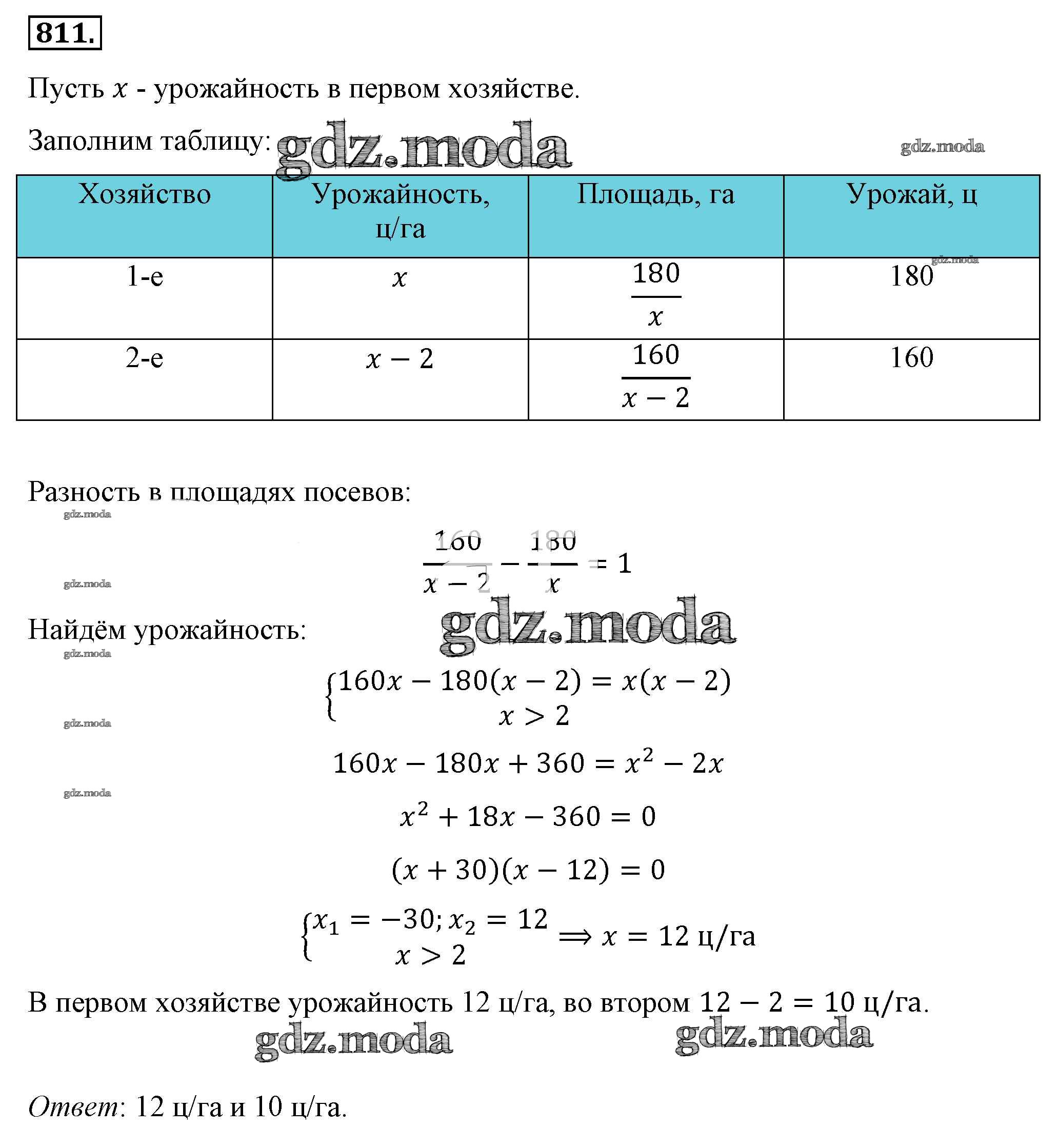 ОТВЕТ на задание № 811 Учебник по Алгебре 8 класс Макарычев