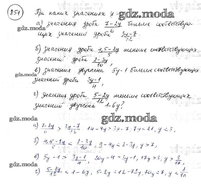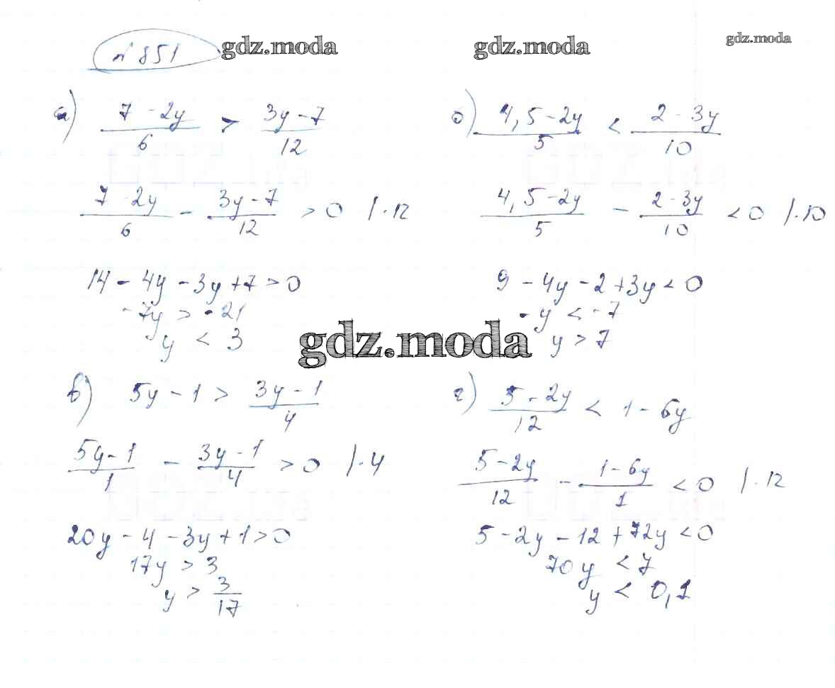ОТВЕТ на задание № 851 Учебник по Алгебре 8 класс Макарычев