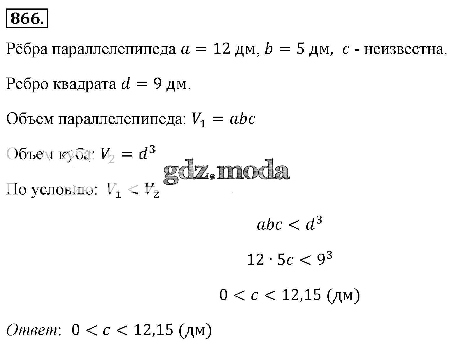 ОТВЕТ на задание № 866 Учебник по Алгебре 8 класс Макарычев