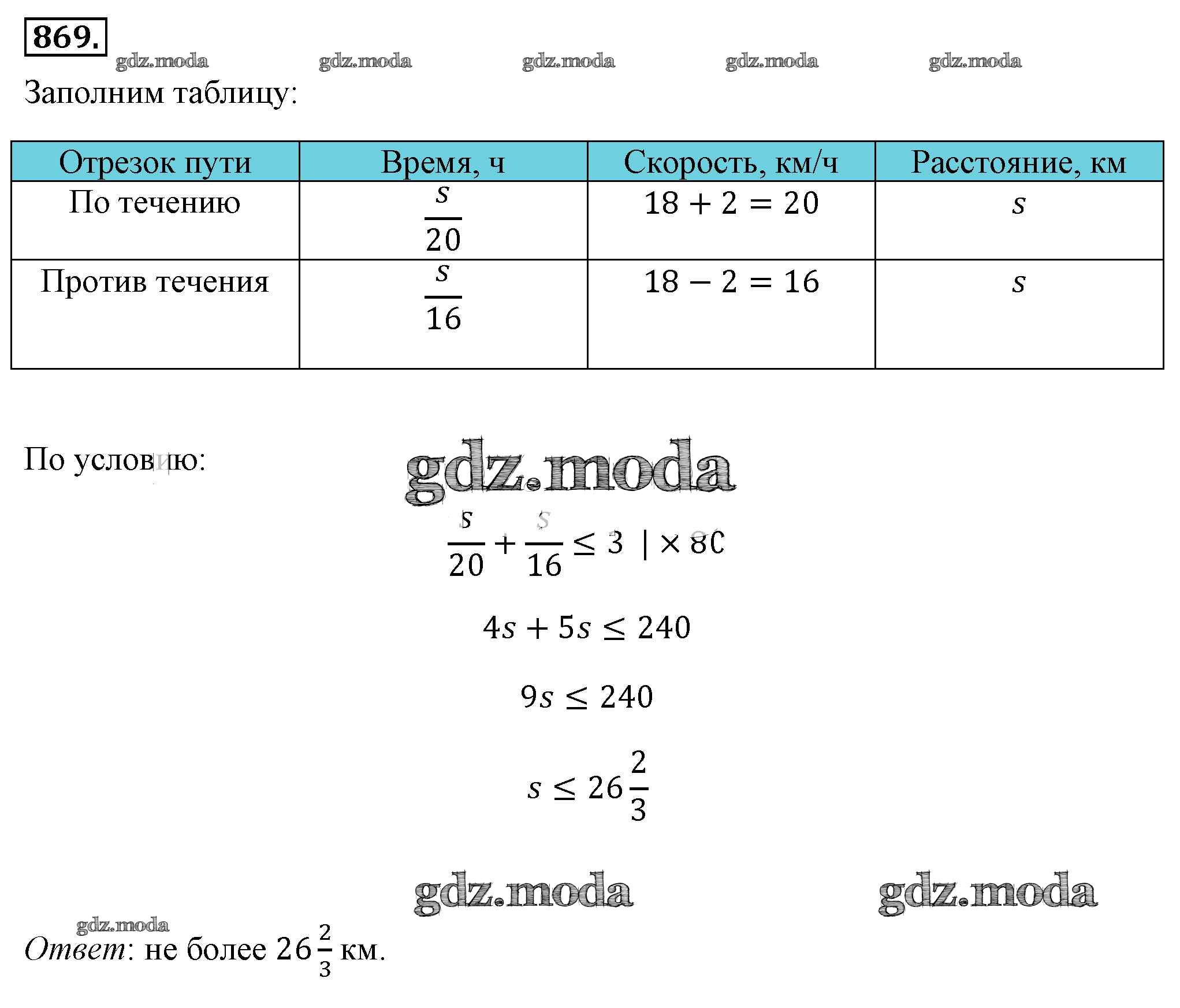 ОТВЕТ на задание № 869 Учебник по Алгебре 8 класс Макарычев