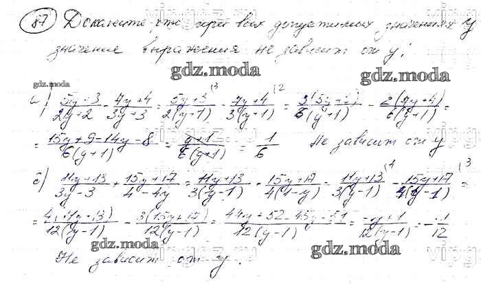 ОТВЕТ на задание № 87 Учебник по Алгебре 8 класс Макарычев