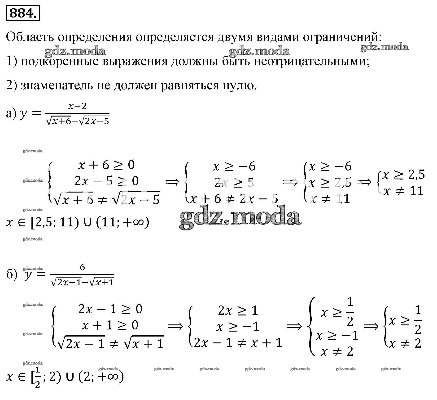 ОТВЕТ на задание № 884 Учебник по Алгебре 8 класс Макарычев