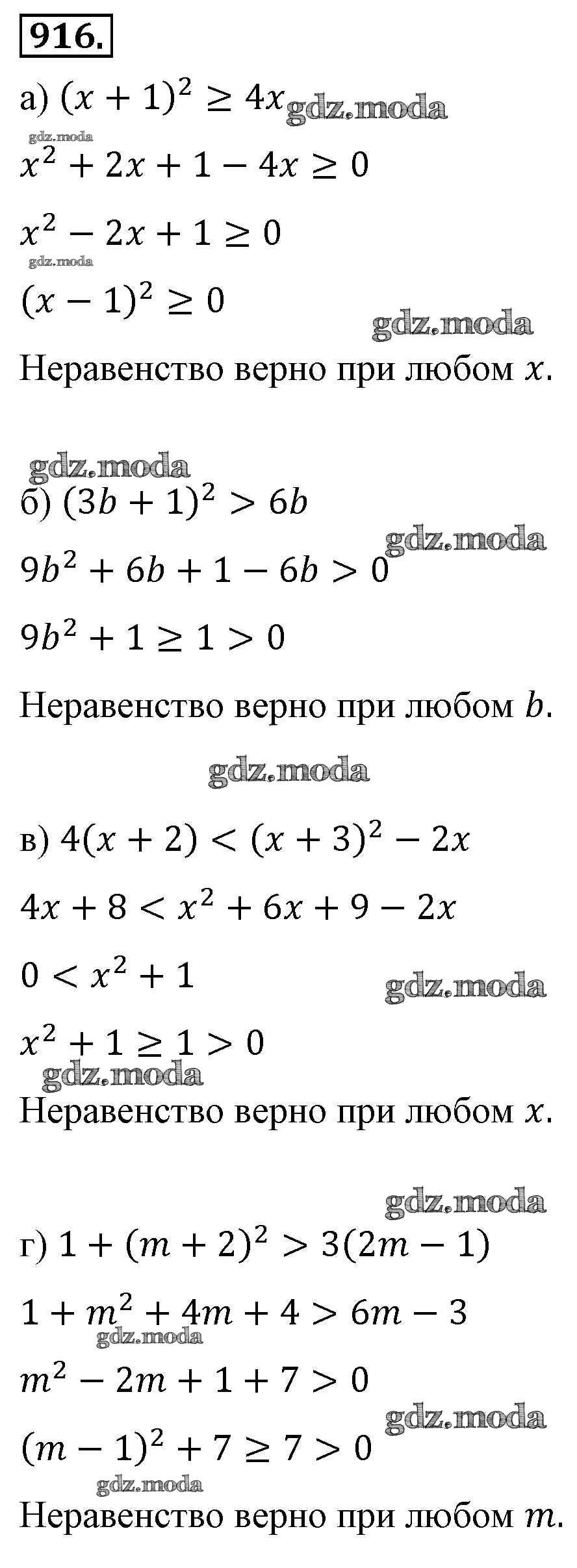 ОТВЕТ на задание № 916 Учебник по Алгебре 8 класс Макарычев