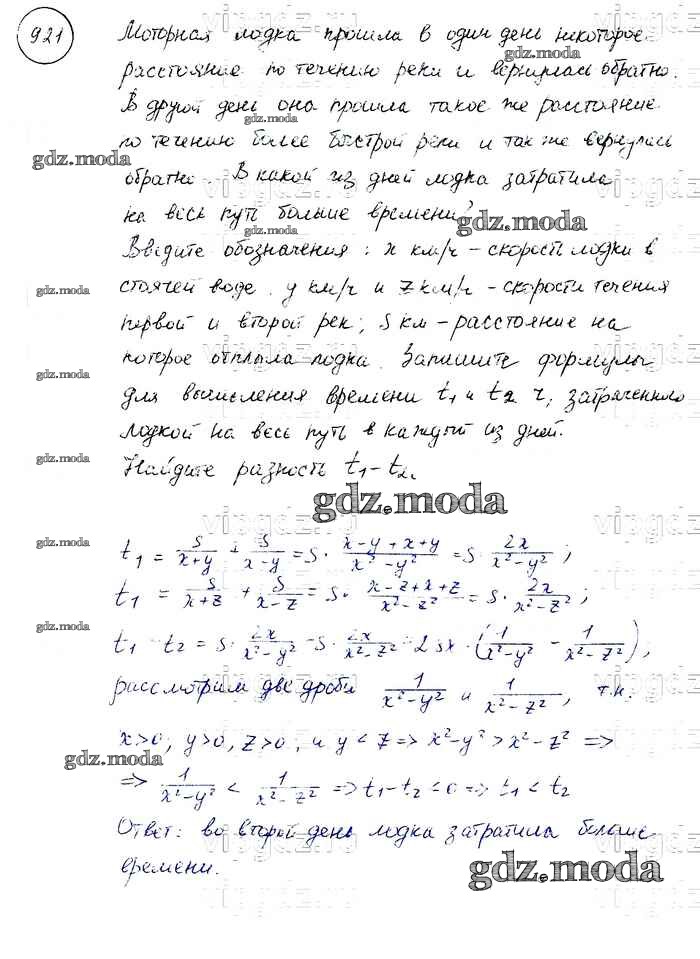 ОТВЕТ на задание № 921 Учебник по Алгебре 8 класс Макарычев