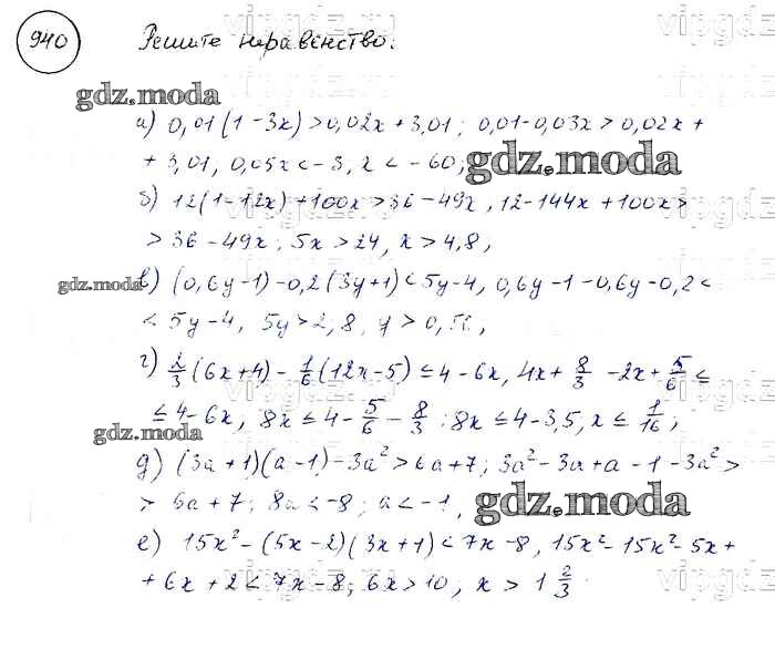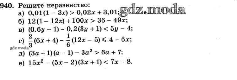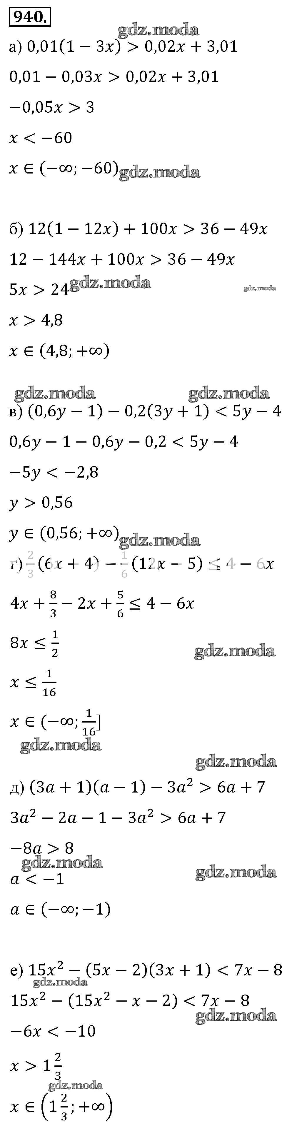 ОТВЕТ на задание № 940 Учебник по Алгебре 8 класс Макарычев