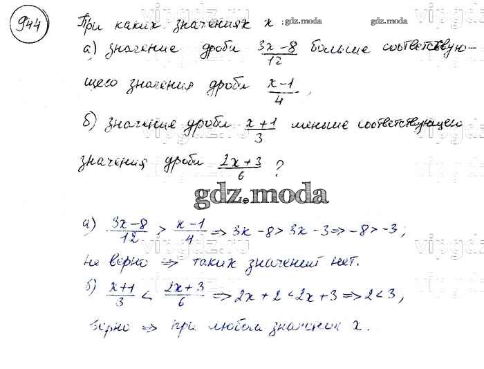 ОТВЕТ на задание № 944 Учебник по Алгебре 8 класс Макарычев
