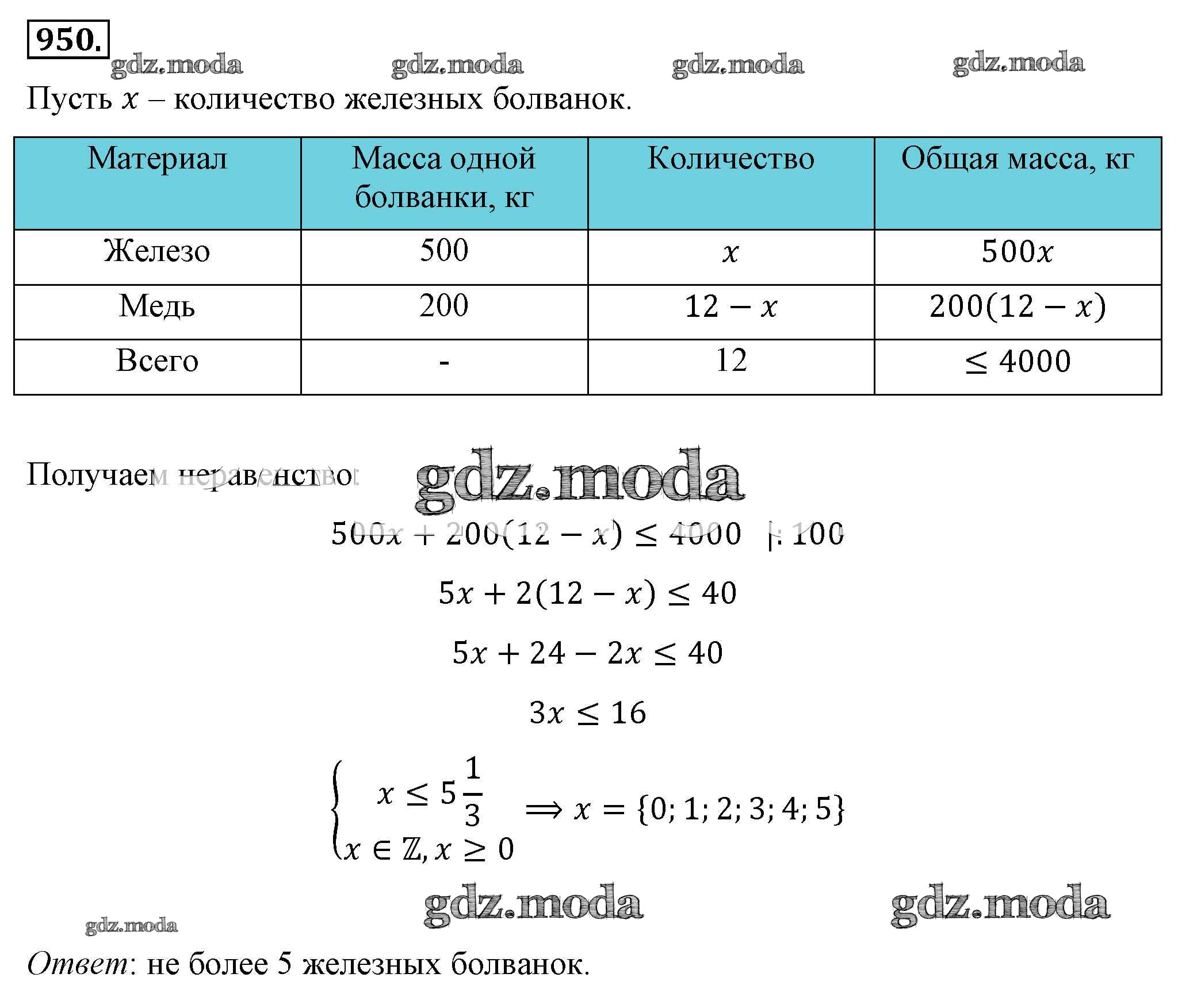 ОТВЕТ на задание № 950 Учебник по Алгебре 8 класс Макарычев