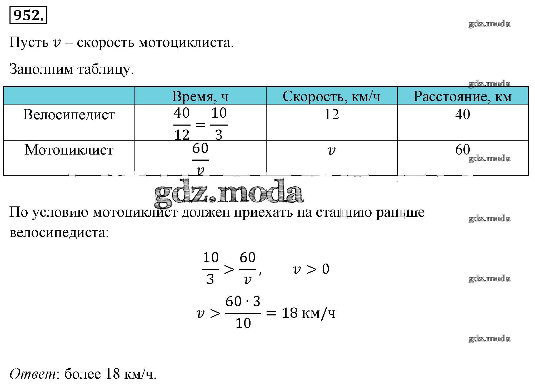 ОТВЕТ на задание № 952 Учебник по Алгебре 8 класс Макарычев