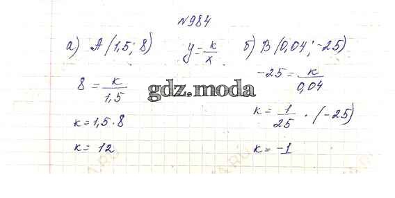 ОТВЕТ на задание № 984 Учебник по Алгебре 8 класс Макарычев