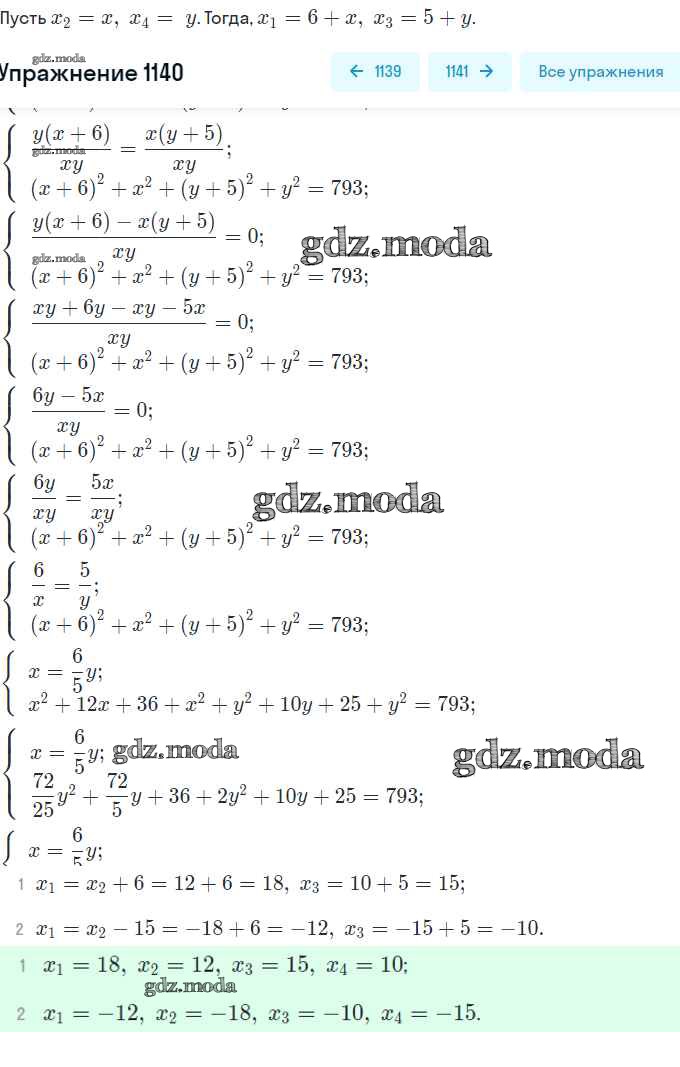 ОТВЕТ на задание № 1140 Учебник по Алгебре 8 класс Макарычев