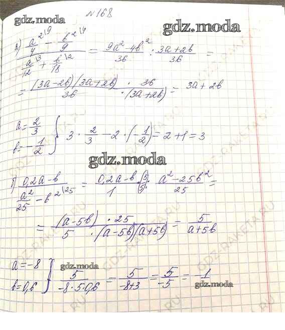 ОТВЕТ на задание № 168 Учебник по Алгебре 8 класс Макарычев