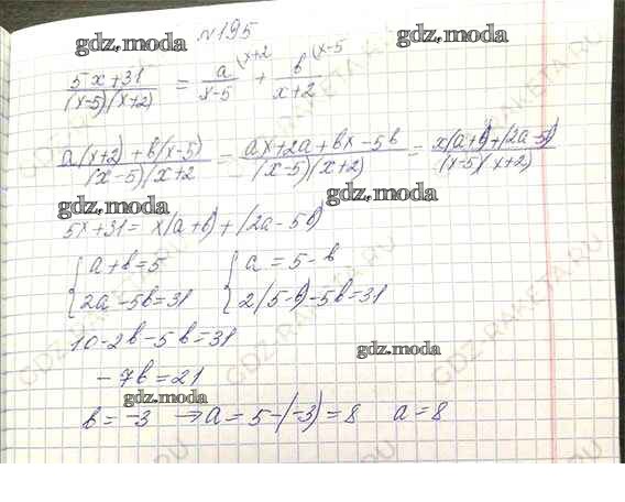 ОТВЕТ на задание № 195 Учебник по Алгебре 8 класс Макарычев