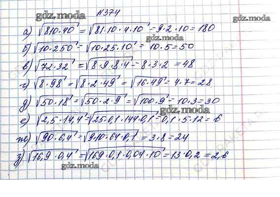 ОТВЕТ на задание № 374 Учебник по Алгебре 8 класс Макарычев