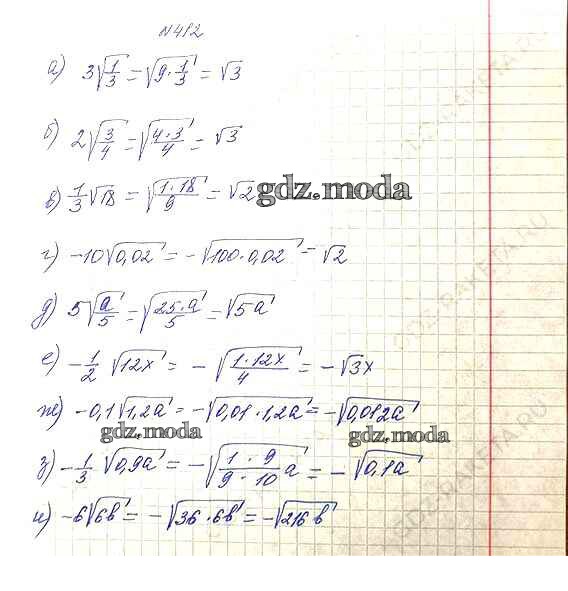 ОТВЕТ на задание № 412 Учебник по Алгебре 8 класс Макарычев