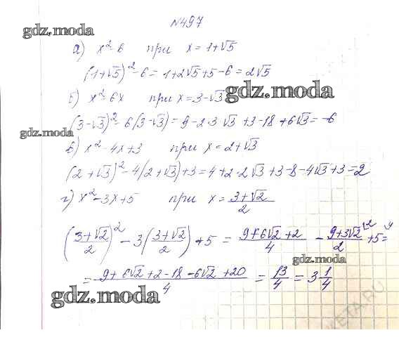 ОТВЕТ на задание № 497 Учебник по Алгебре 8 класс Макарычев