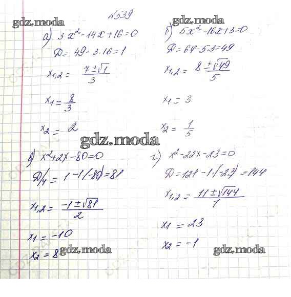 ОТВЕТ на задание № 539 Учебник по Алгебре 8 класс Макарычев