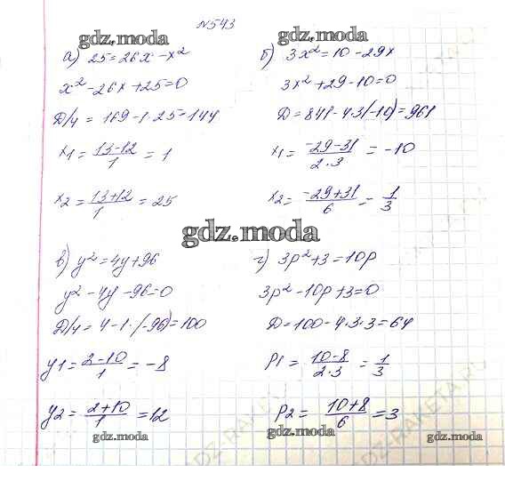 ОТВЕТ на задание № 543 Учебник по Алгебре 8 класс Макарычев