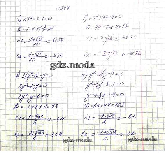 ОТВЕТ на задание № 547 Учебник по Алгебре 8 класс Макарычев