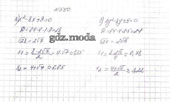 ОТВЕТ на задание № 550 Учебник по Алгебре 8 класс Макарычев