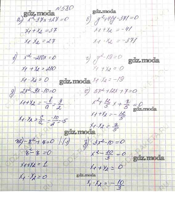 ОТВЕТ на задание № 580 Учебник по Алгебре 8 класс Макарычев