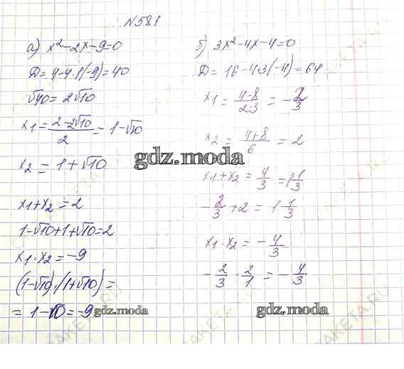 ОТВЕТ на задание № 581 Учебник по Алгебре 8 класс Макарычев