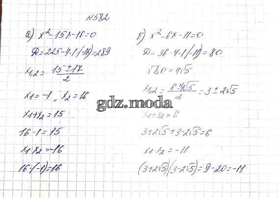 ОТВЕТ на задание № 582 Учебник по Алгебре 8 класс Макарычев