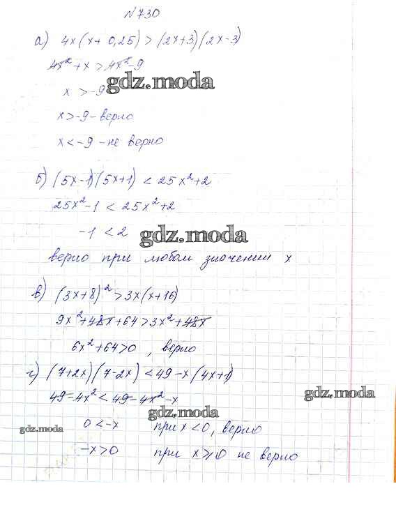 ОТВЕТ на задание № 730 Учебник по Алгебре 8 класс Макарычев