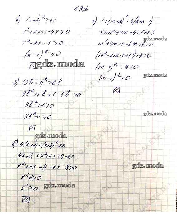 ОТВЕТ на задание № 916 Учебник по Алгебре 8 класс Макарычев