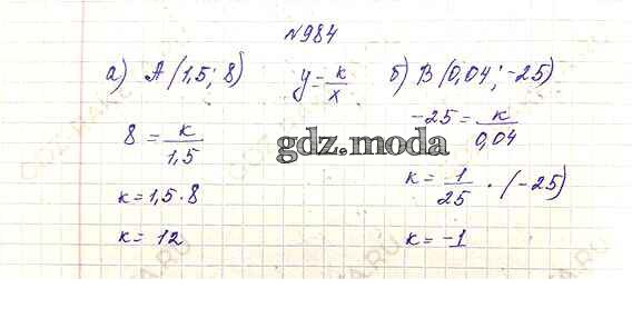 ОТВЕТ на задание № 984 Учебник по Алгебре 8 класс Макарычев