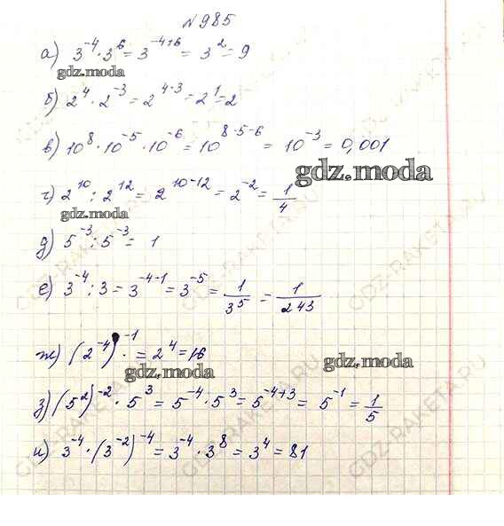 ОТВЕТ на задание № 985 Учебник по Алгебре 8 класс Макарычев