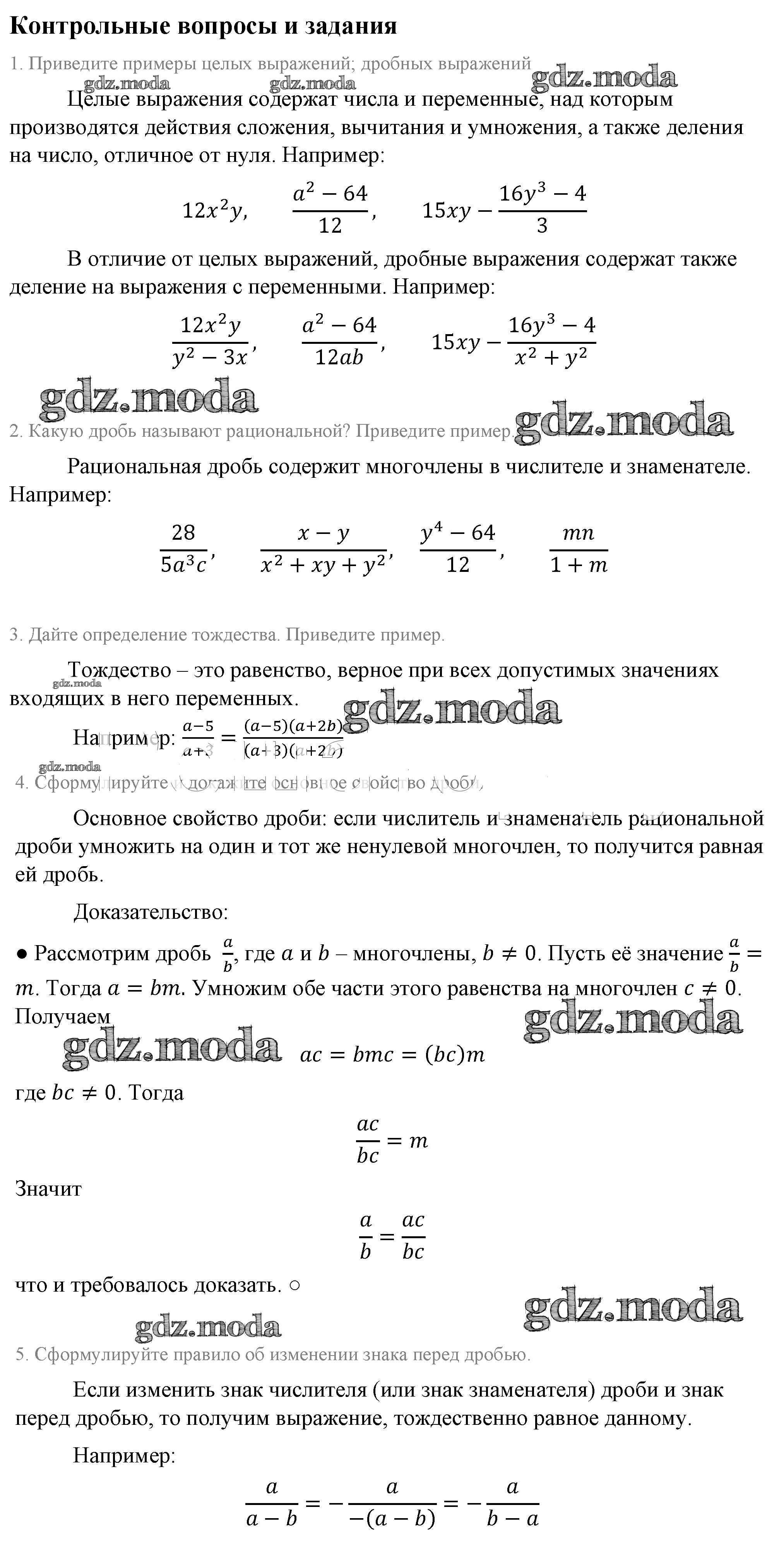 ГДЗ решение к заданию № 1 Алгебра 8 класс Макарычев Ю.Н. Просвещение 2016 ФГОС бесплатно на гдз.мода!