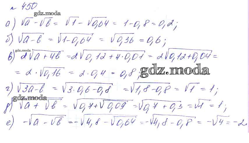 ОТВЕТ на задание № 450 Учебник по Алгебре 8 класс Макарычев Углубленный уровень