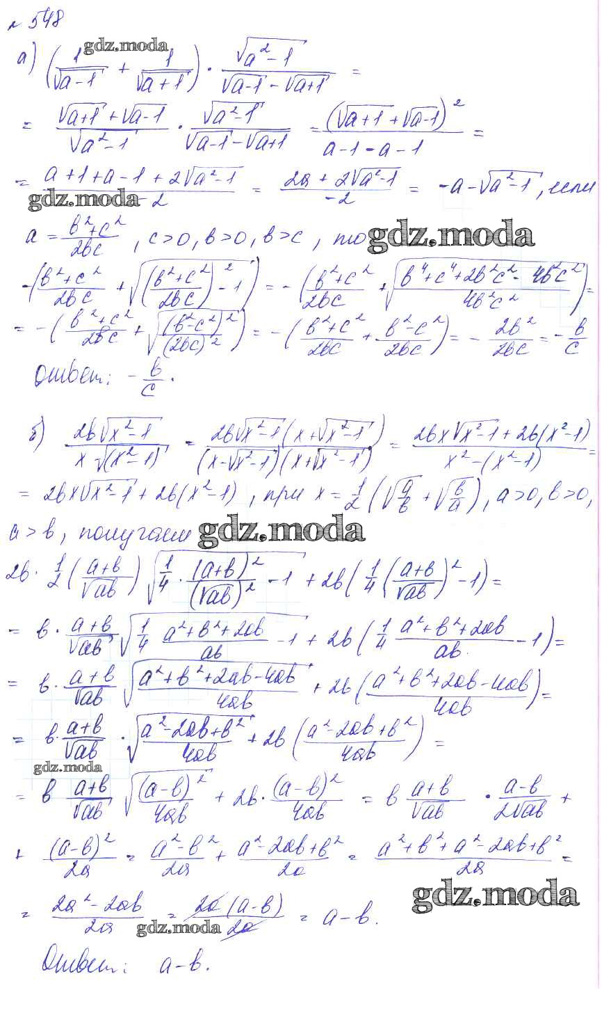 ГДЗ решение к заданию № 548 Алгебра 8 класс Макарычев Ю.Н. Мнемозина 2014 Углубленный уровень ФГОС бесплатно на гдз.мода!