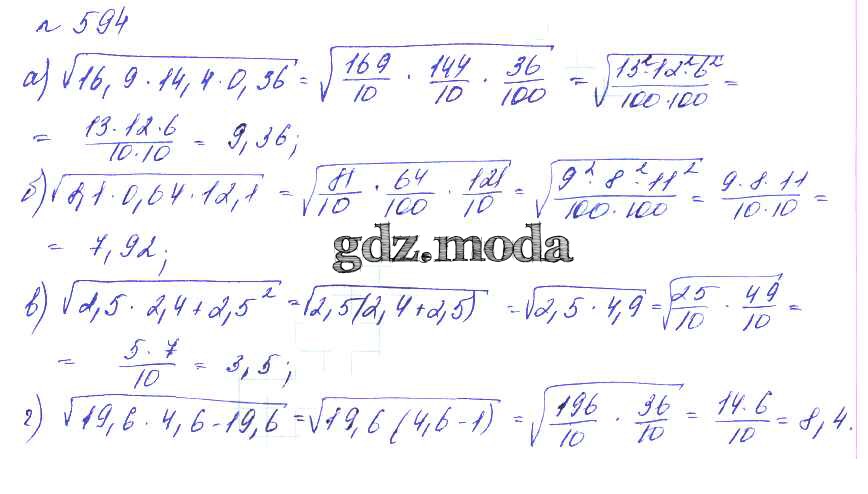 ОТВЕТ на задание № 594 Учебник по Алгебре 8 класс Макарычев Углубленный уровень