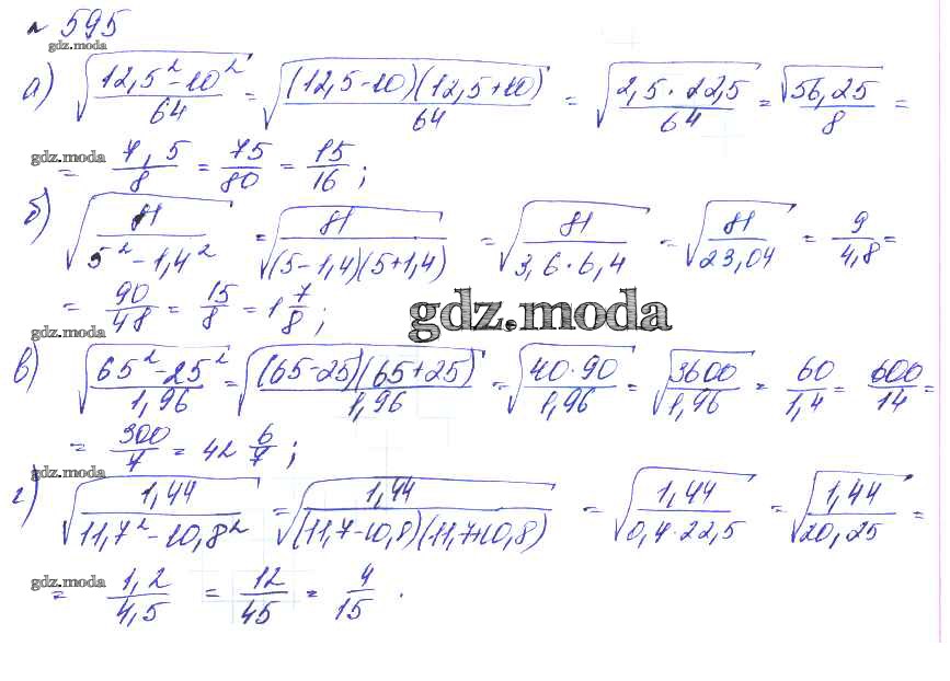 ГДЗ решение к заданию № 595 Алгебра 8 класс Макарычев Ю.Н. Мнемозина 2014 Углубленный уровень ФГОС бесплатно на гдз.мода!