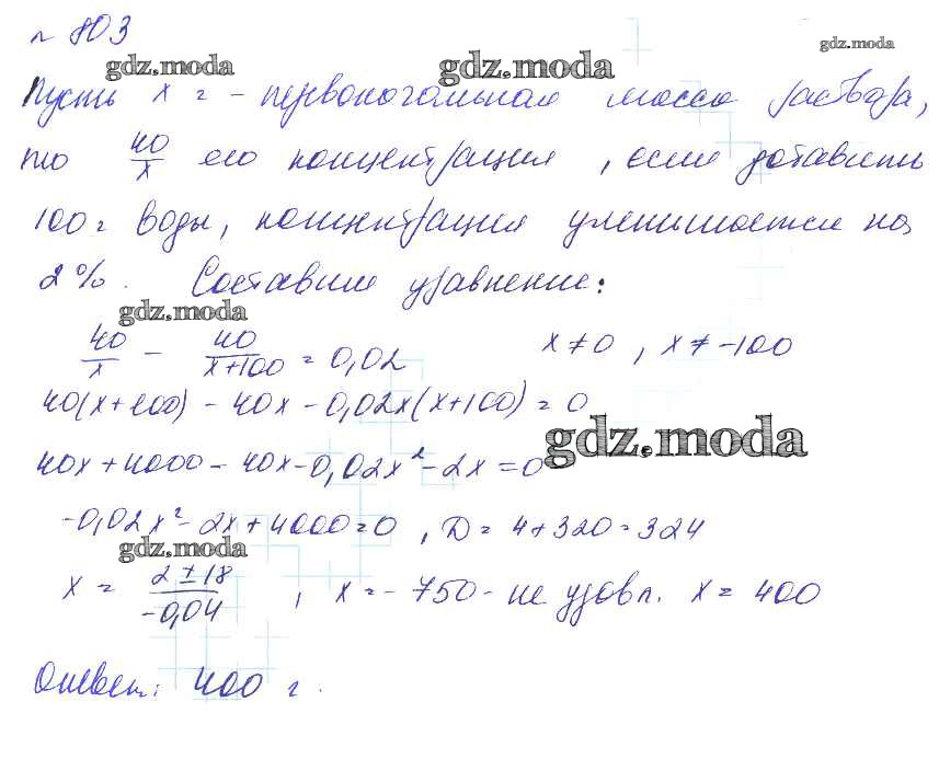 ГДЗ решение к заданию № 803 Алгебра 8 класс Макарычев Ю.Н. Мнемозина 2014 Углубленный уровень ФГОС бесплатно на гдз.мода!