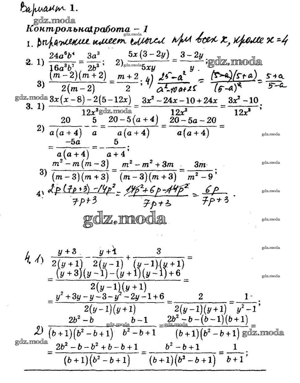 ОТВЕТ на задание № вариант 1 Дидактические материалы по Алгебре 8 класс Мерзляк Алгоритм успеха