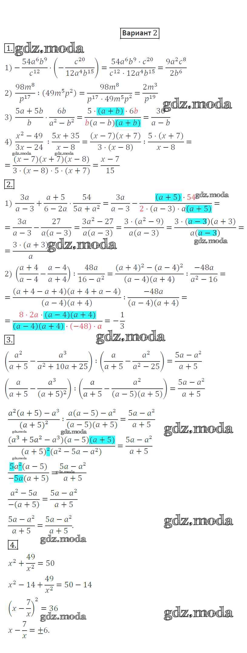 ОТВЕТ на задание № вариант 2 Дидактические материалы по Алгебре 8 класс Мерзляк Алгоритм успеха