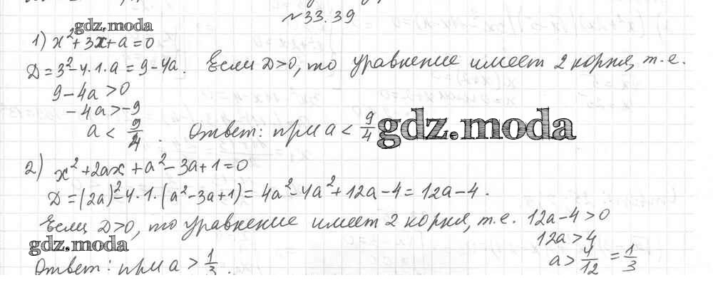 ОТВЕТ на задание № 39 Учебник по Алгебре 8 класс Мерзляк Алгоритм успеха Углубленный уровень